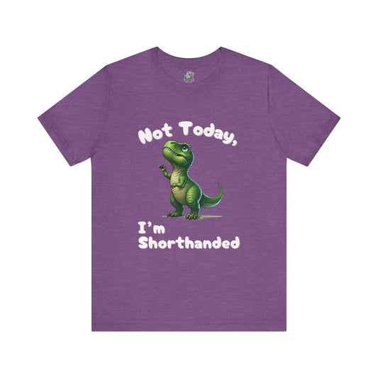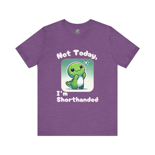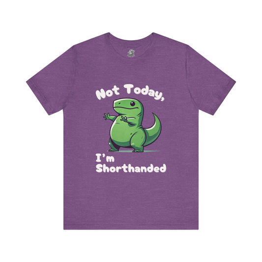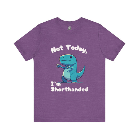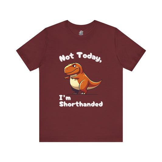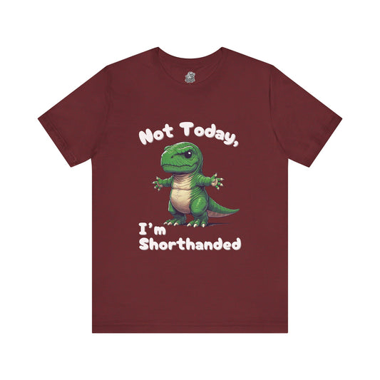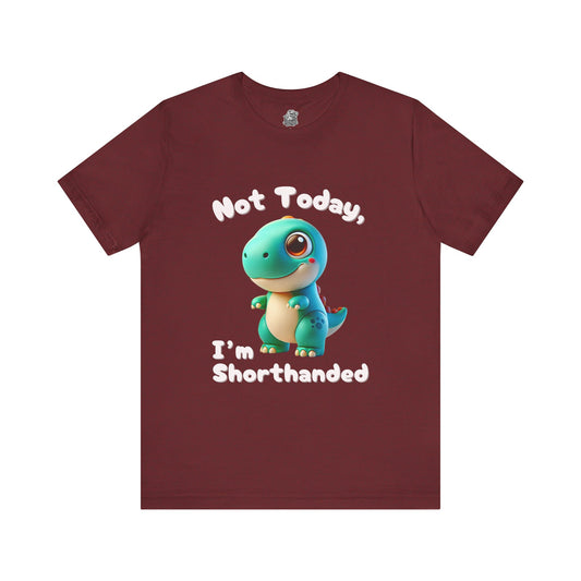 Shorthanded Dino – Not Today, I’m Shorthanded Unisex T-Shirt with Adorable Cartoon Design