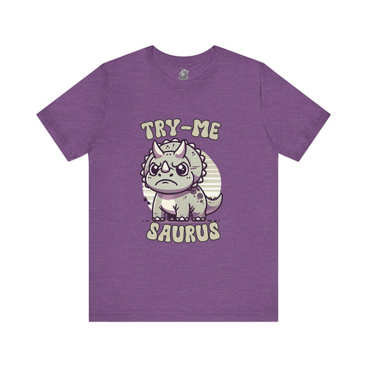 Try Me Saurus Unisex T-Shirt – Fun & Quirky Blue T-Rex Design for Dino Lovers"
