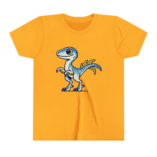 YouthPlayful Blue & Yellow Velociraptor Tee – Dino Fun for All Ages! 🦖💙💛 - Unisex Jersey Short Sleeve Tee Super Comfy Dino T-Shirt Gift