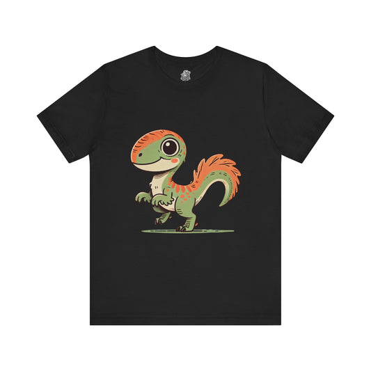 Charming Green & Orange Velociraptor Tee – Dino Delight for All Ages! 🦖🍃🧡 - Unisex Jersey Short Sleeve Tee Super Comfy Dino T-Shirt Gift
