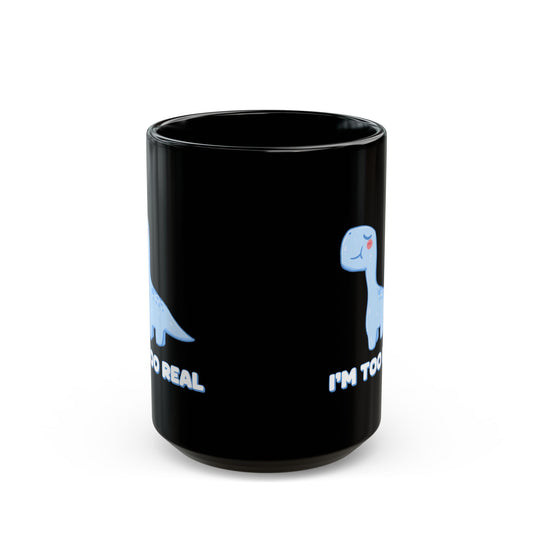 I m Too Real 11oz or 15oz Dino Black Ceramic Park Type Mug for the Jurassic Dinosaur Fans