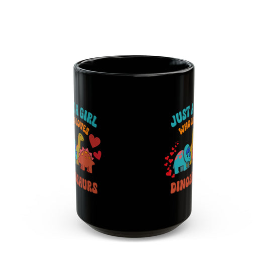Just a Girl Who Loves Dinosaurs 11oz or 15oz Dino Black Ceramic Park Type Mug for the Jurassic Dinosaur Fans