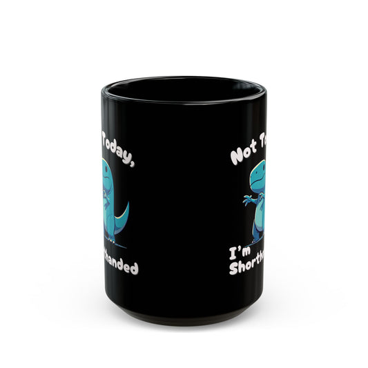 Orange Not Today, Im Shorthanded 11oz or 15oz Dino Black Ceramic Park Type Mug for the Jurassic Dinosaur Fans