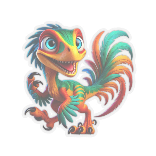 Exotic Rainbow-Feathered Velociraptor - Amazing Kiss-Cut Sticker Gift to dino decorate any surface Great Birthday Gift