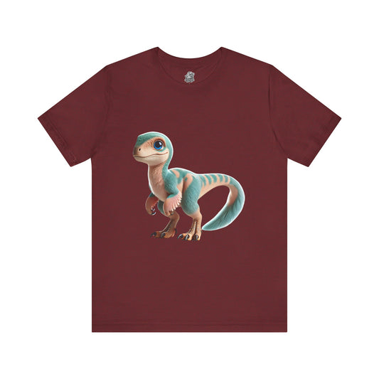 Sweet Baby Velociraptor Tee – Gentle Dino Charm in Soft Teal & Tan! 🦖💚✨ - Unisex Jersey Short Sleeve Tee Super Comfy Dino T-Shirt Gift