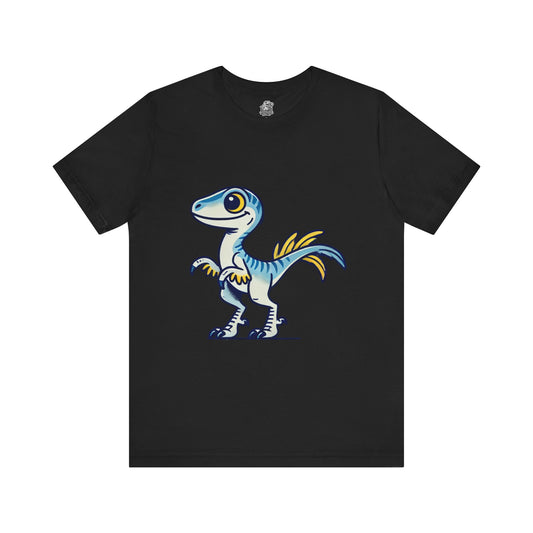 Playful Blue & Yellow Velociraptor Tee – Dino Fun for All Ages! 🦖💙💛 - Unisex Jersey Short Sleeve Tee Super Comfy Dino T-Shirt Gift