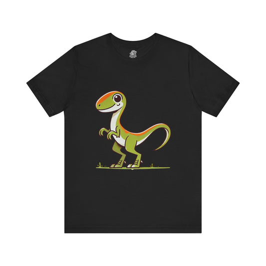 Playful Green Velociraptor Tee – Cute Dino Style with a Splash of Fun! 🦖🍂🌿 - Unisex Jersey Short Sleeve Tee Super Comfy Dino T-Shirt Gift