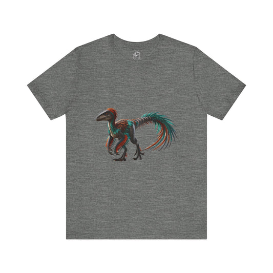 Stunning Feathered Velociraptor Tee – Bold Jungle Colors & Fierce Dino Style! 🦖🍂🌌 - Unisex Jersey Short Sleeve Tee Super Comfy Dino T-Shirt Gift