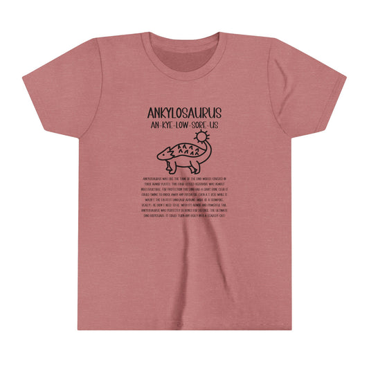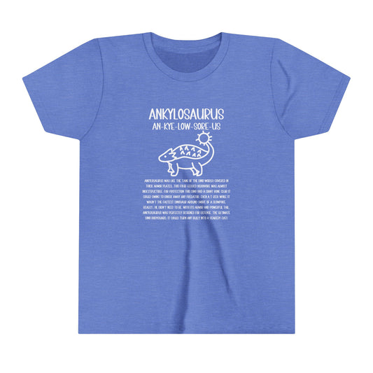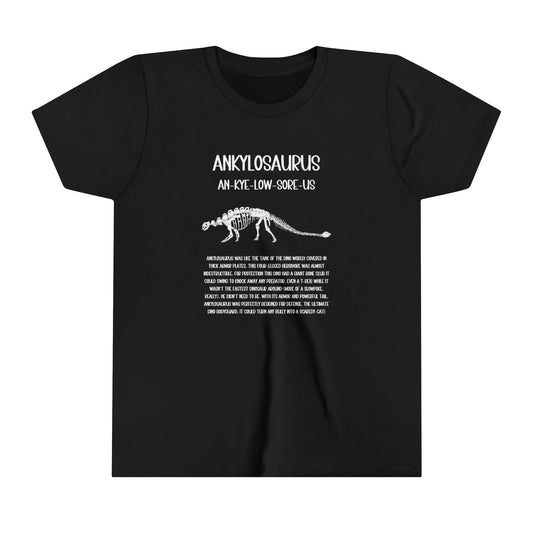 Youth Defensive Ankylosaurus T-Shirt with Detailed White Graphics - Unisex Jersey Short Sleeve Tee Super Comfy Dino T-Shirt Gift