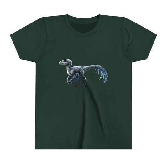 Youth Icy Blue Feathered Velociraptor Tee – Fierce Style in Cool Tones! 🦖❄️🌌 - Unisex Jersey Short Sleeve Tee Super Comfy Dino T-Shirt Gift