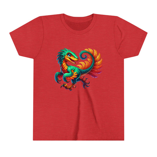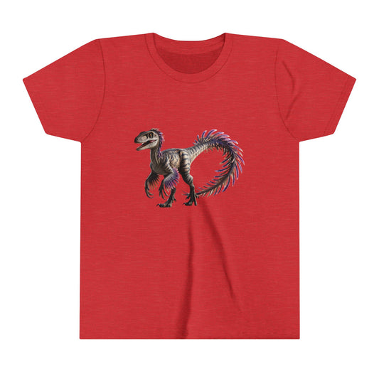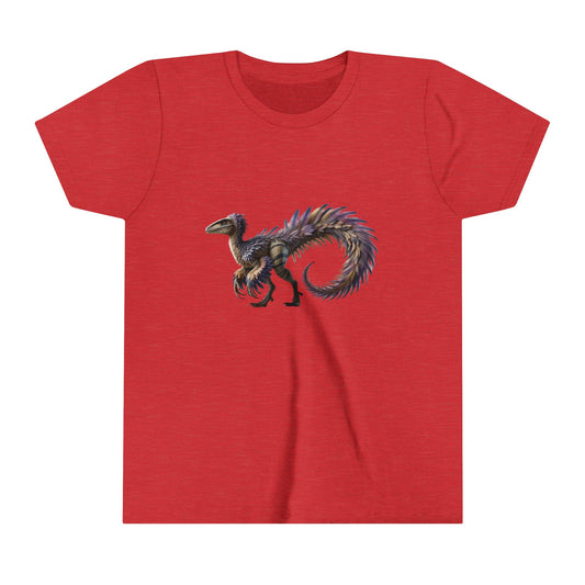 Youth Exotic Rainbow-Feathered Velociraptor – Stunningly Realistic & Playful - Unisex Jersey Short Sleeve Tee Super Comfy Dino T-Shirt Gift