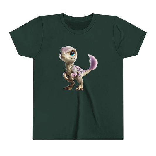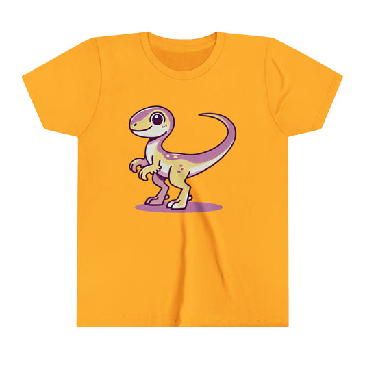 Youth Lovable Baby Velociraptor Tee – Sweet Dino Style in Soft Pastels! 🦖💜✨ - Unisex Jersey Short Sleeve Tee Super Comfy Dino T-Shirt Gift