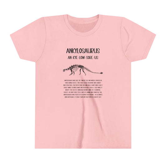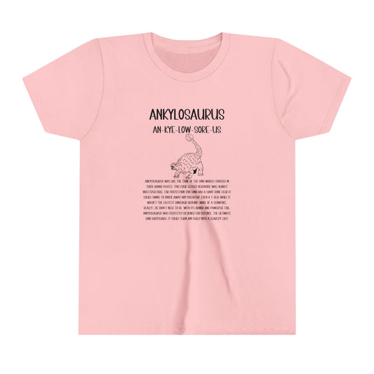 Youth Defensive Ankylosaurus T-Shirt with Black Graphics - Unisex Jersey Short Sleeve Tee Super Comfy Dino T-Shirt Gift
