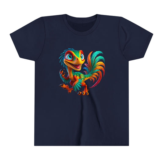Youth Colorful & Lively Velociraptor with Vibrant Feathers – Perfect for Dino Lovers! - Unisex Jersey Short Sleeve Tee Super Comfy Dino T-Shirt Gift