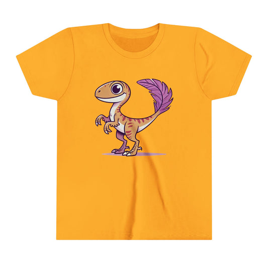 Youth Friendly Feathered Velociraptor Tee – Cute Dino Style with a Splash of Color! 🦖💜🍃 - Unisex Jersey Short Sleeve Tee Super Comfy Dino T-Shirt Gift