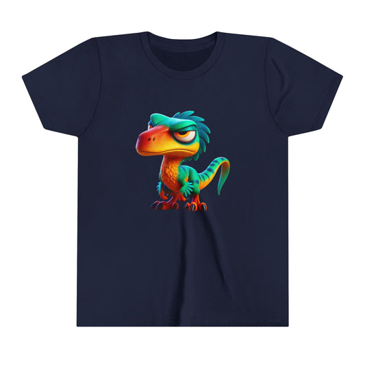 Youth Colorful & Feisty Velociraptor – Unleash the Attitude!- Unisex Jersey Short Sleeve Tee Super Comfy Dino T-Shirt Gift