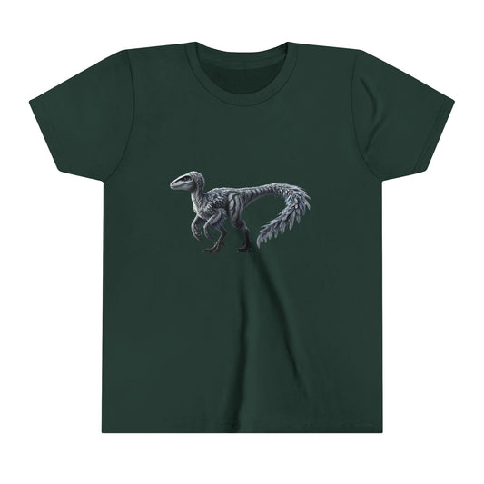 Youth Wild & Feathered Velociraptor Tee – Bold Jungle Vibes and Fierce Dino Style! 🦖🌿🔥 - Unisex Jersey Short Sleeve Tee Super Comfy Dino T-Shirt Gift