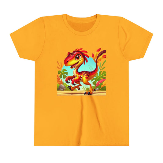 Youth Stunning Feathered Velociraptor Tee – Bold Jungle Colors & Fierce Dino Style! 🦖🍂🌌 - Unisex Jersey Short Sleeve Tee Super Comfy Dino T-Shirt Gift