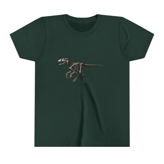 Youth Velociraptor Skeleton Tee – Bold Fossil Graphic for Dinosaur Lovers! 🦖🦴✨ - Unisex Jersey Short Sleeve Tee Super Comfy Dino T-Shirt Gift