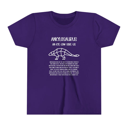 Youth Polygon Ankylosaurus T-Shirt with White Graphics - Unisex Jersey Short Sleeve Tee Super Comfy Dino T-Shirt Gift
